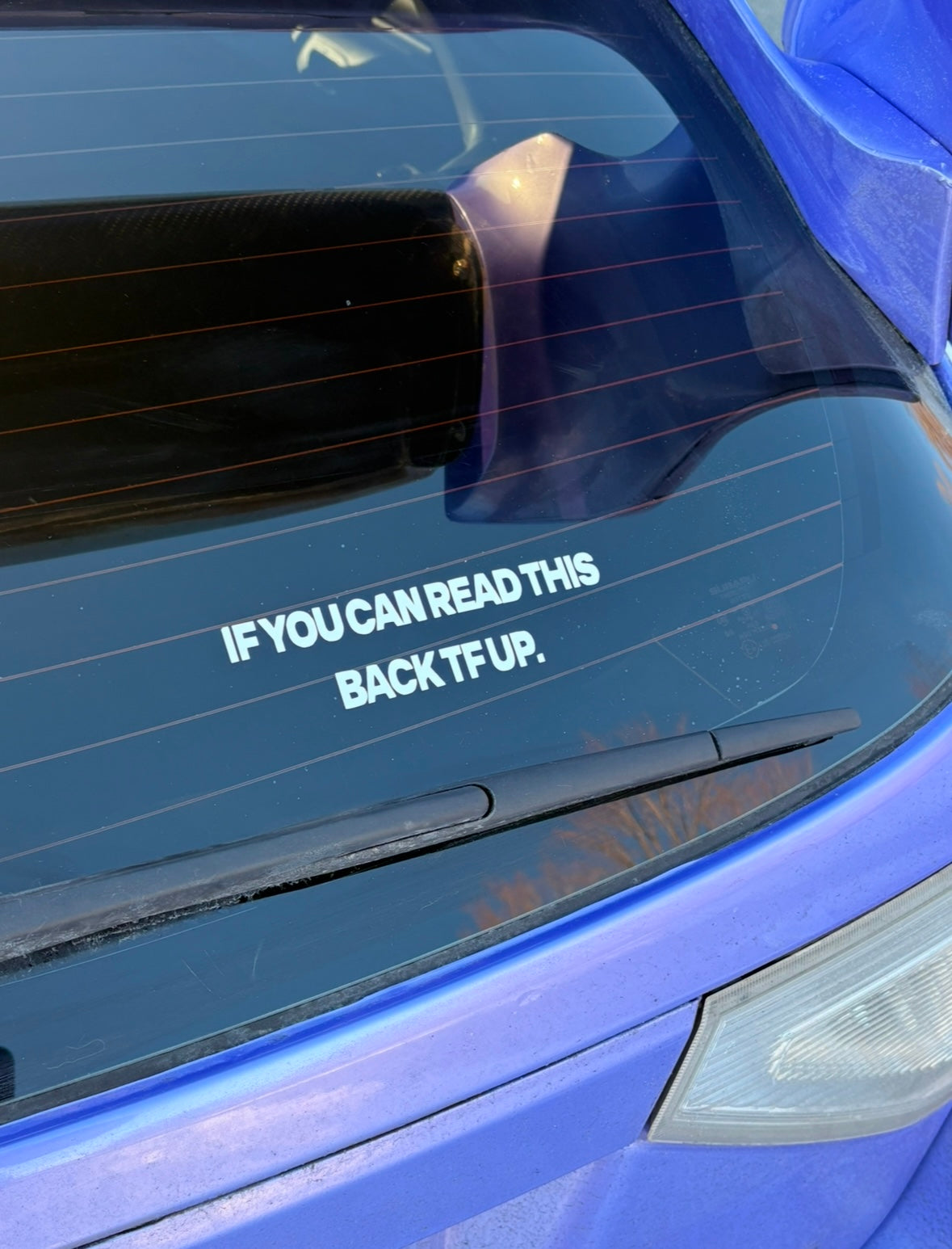 “If You Can Read This, Back TF Up” Sticker – A Fun Warning for Tailgaters!